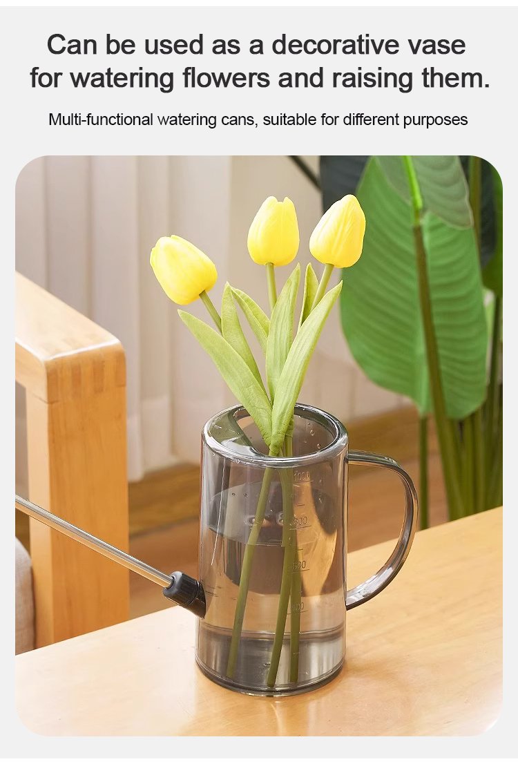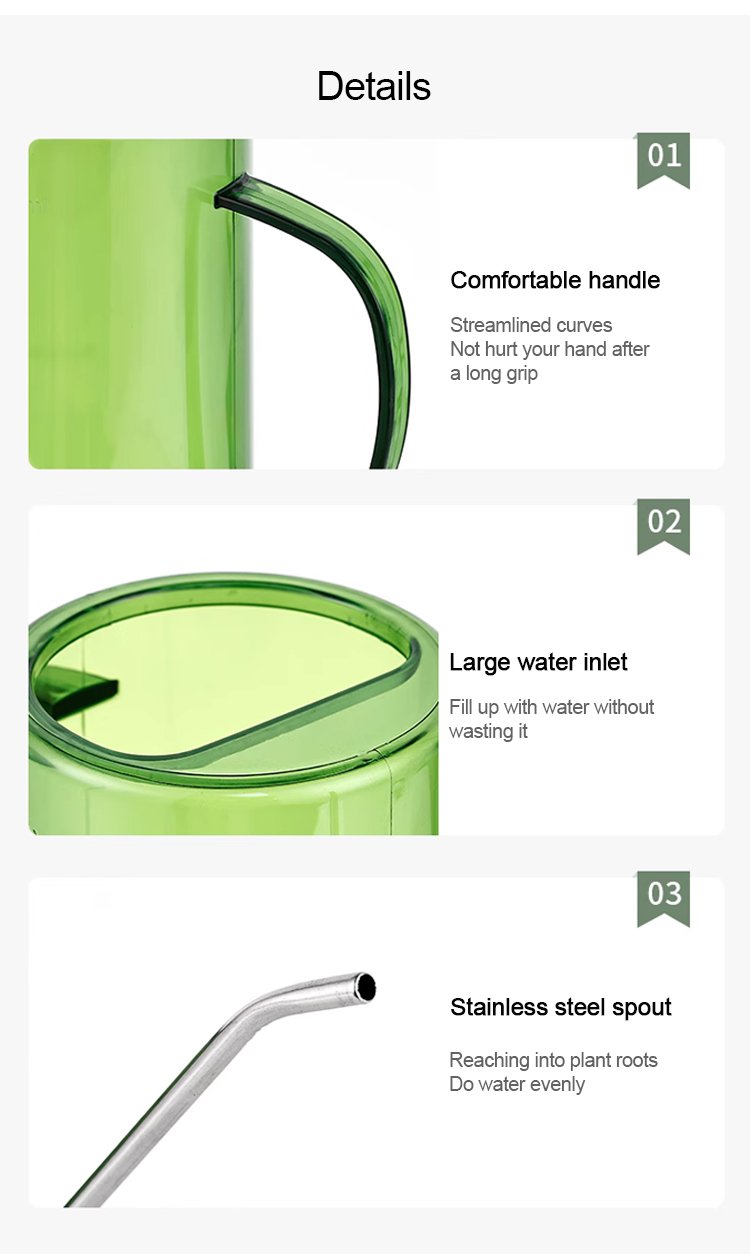 ● The extra-long, narrow spout provides precise water flow, making it easy to reach the base of plants without spilling or splashing.